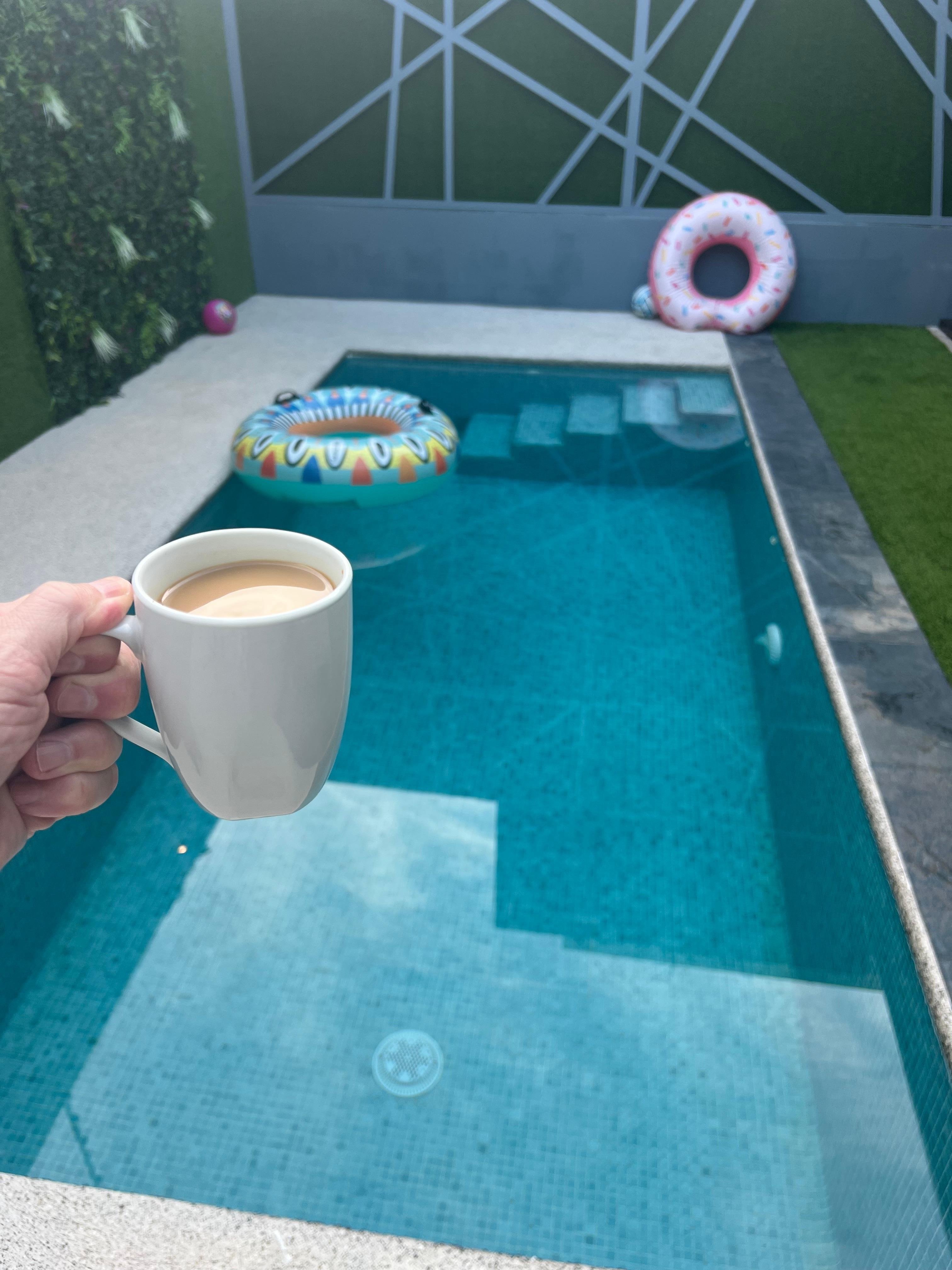 Step outside to the terrace with a BBQ area featuring an electric grill and enjoy your own private pool. The pool area includes lounge chairs, pool toys, and floaties—perfect for relaxing or family fun.