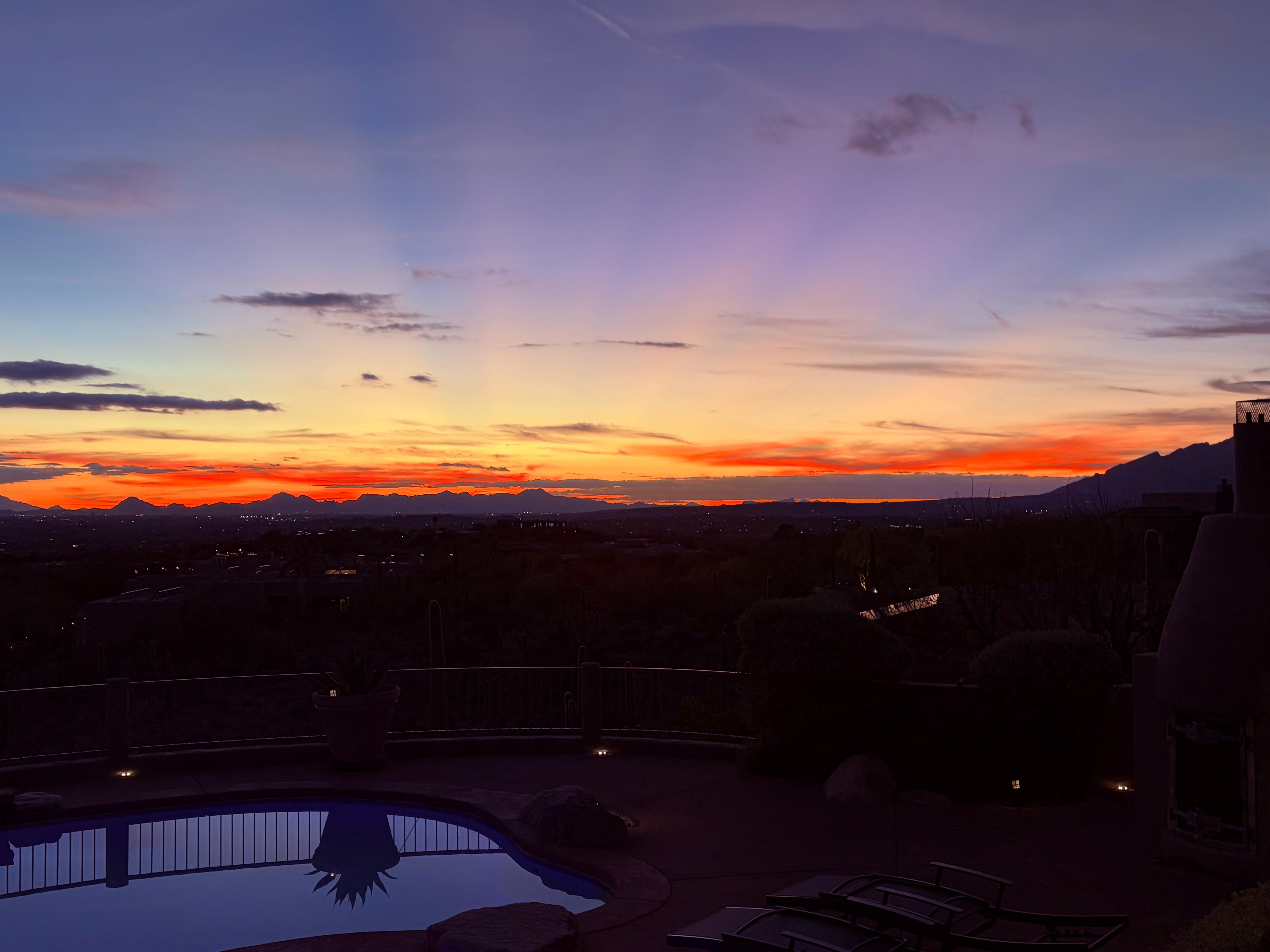 I don't think there could be more spectacular views anywhere in Tucson. The 180 degree views to the east, turning south, and then to the western sunsets are exactly what anyone would hope for when visiting Arizona. Additionally, large picture windows in every room offer a view of either the Tucson skyline or one of Tucson's numerous mountain ranges. Furthermore, to be so close to Tucson, yet offer the serenity and quietness that it does, is so surprising. And those things only speak to what it's like when the sun is up. The dark night skies are an aspiring astronomer's live action observatory.