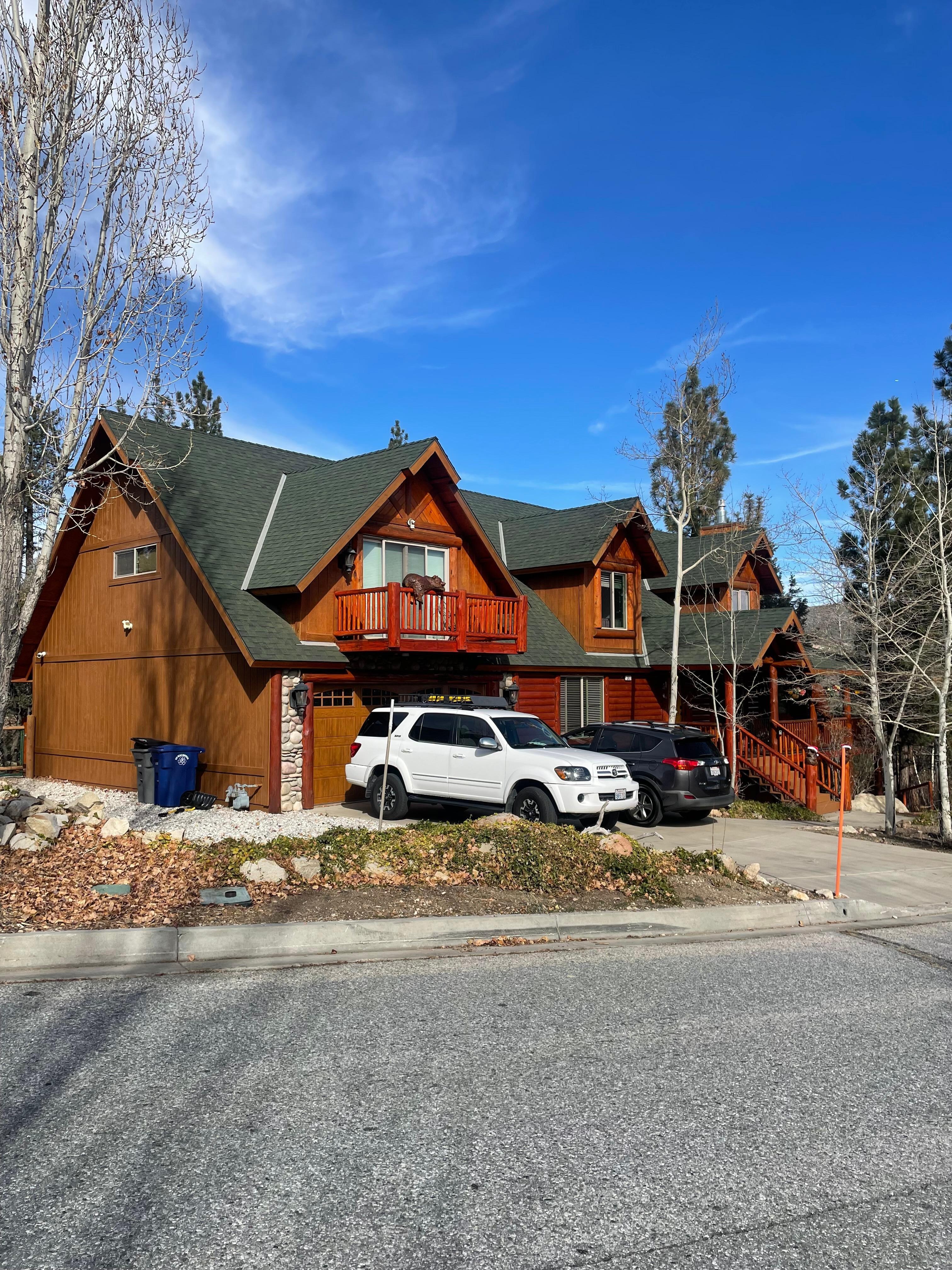 After a day of adventures on the mountains, lake, or one of the two local ski resorts, you will return to this home to relax and unwind with your family and friends. Stretch out in front of the fireplace, enjoy the deck and tree-lined lot, and challenge your cabin mates to a game of pool. This home has everything you need to create memories in the Big Bear Mountains. The log-style retreat was newly built and decorated in 2018.