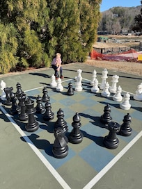 The condo stay includes guest passes to get into the resort’s gym (weights and cardio), full-service salon & spa (online menu of massages, hair, face & nail treatments can be found at www.rumblingbald.com ), indoor & outdoor pool areas, hot tub, and other featured amenities. If you’re not out golfing on one of the two championship courses, you can enjoy tennis, pickleball, basketball, life-size chess and checkers, corn hole games, a mini-golf course (mini-golf has a small extra fee), kids’ playground and the beach.