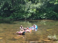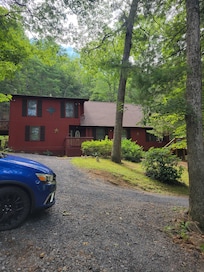The cabin is in seven wooded acres with 3 BR, 3 BA and perched on the Lost River. We have just two nearby neighbors. The surrounding area offers hiking, fishing, kayaking, canoeing, horseback riding, and plenty of other outdoor adventures. For those working remotely, we have high-speed, fiber-optic Internet. And for families, we have a Pack'n Play.