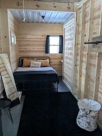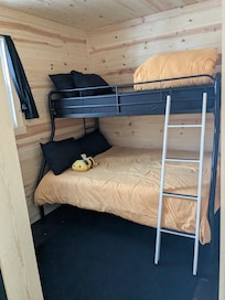 Our cabin offers two bedrooms—one with a queen-size bed and the other with a twin-over-full bunk bed—making it perfect for families or small groups.