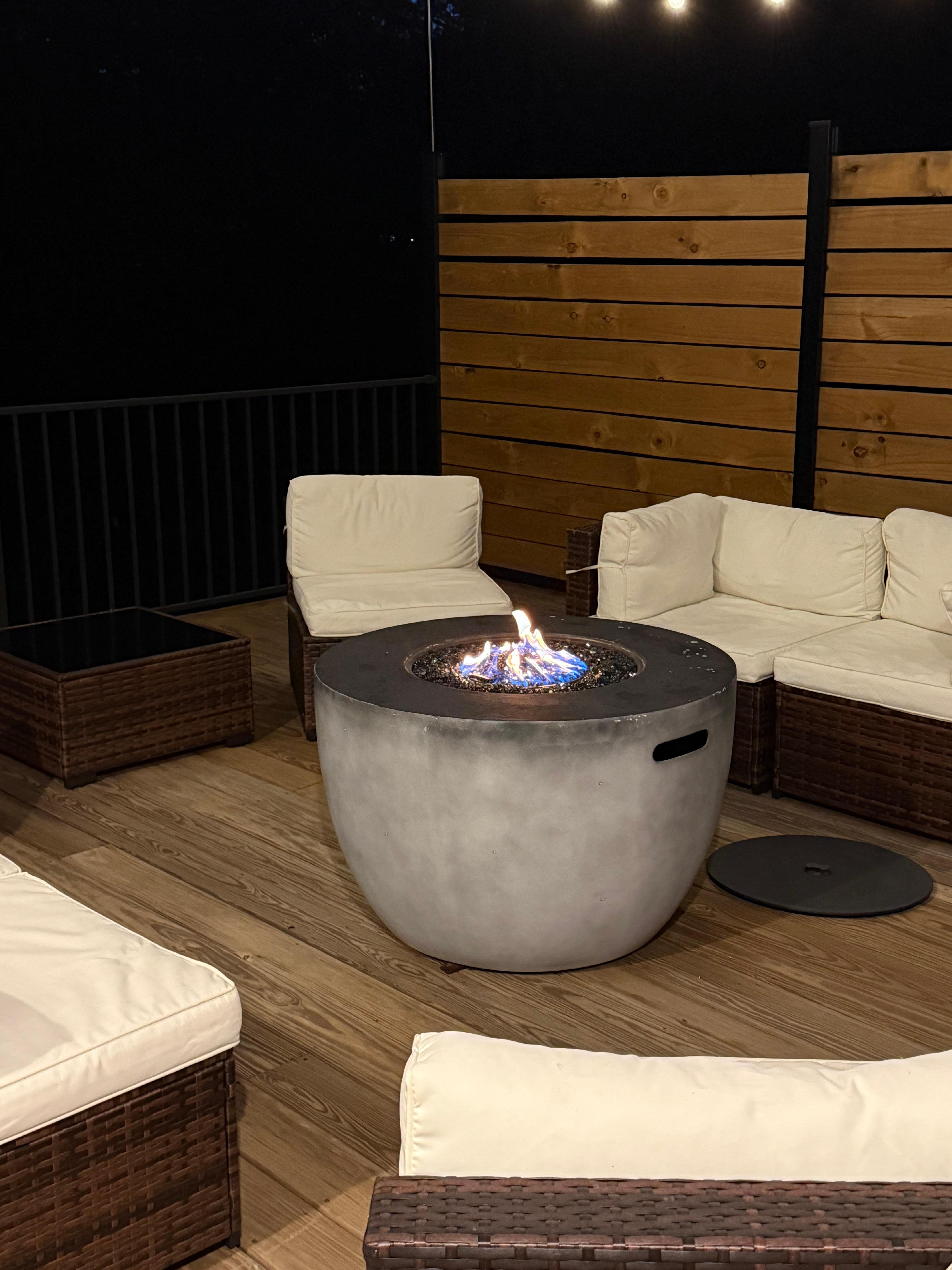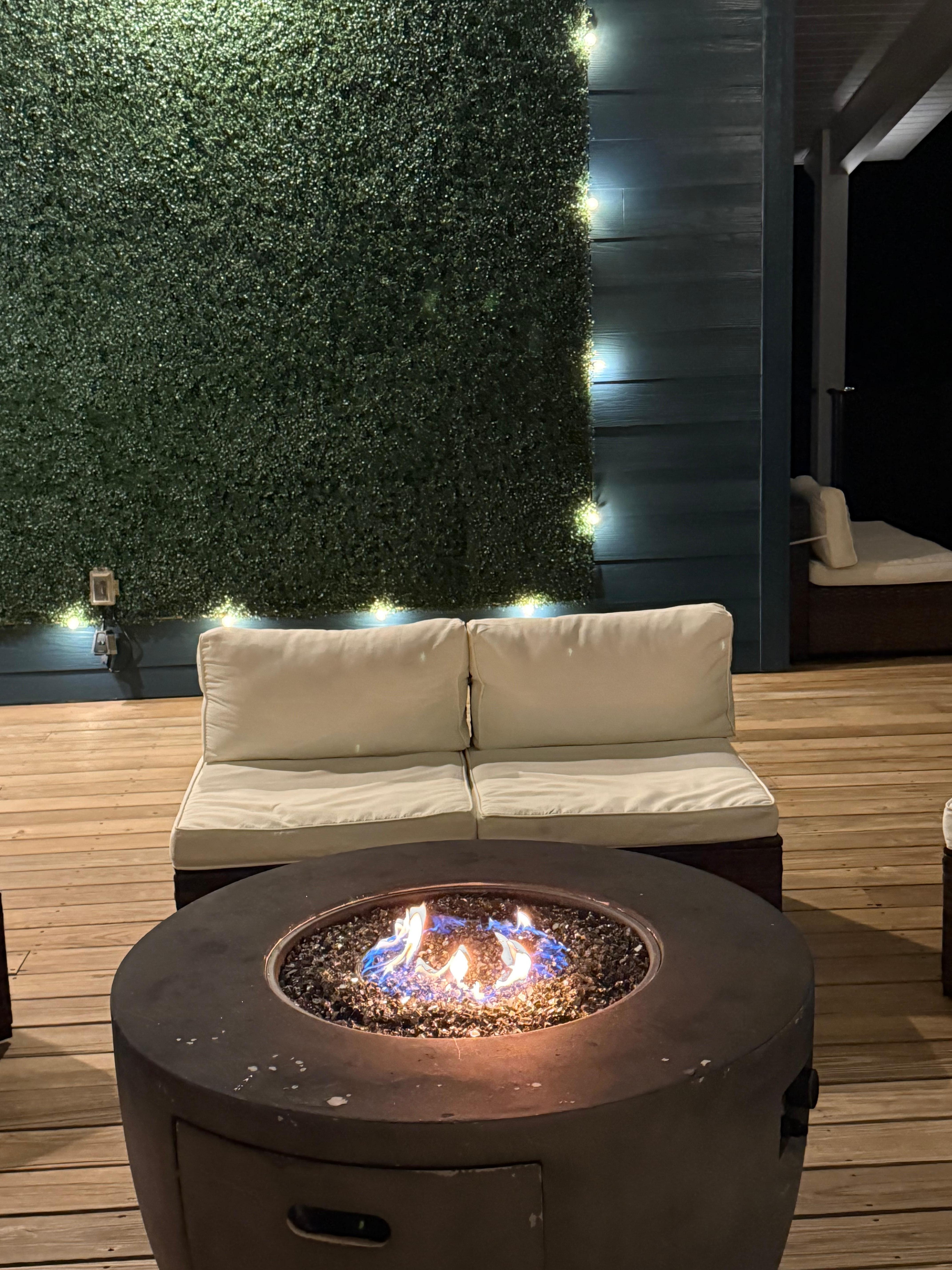 · Large terrace with fire pit and photo op wall