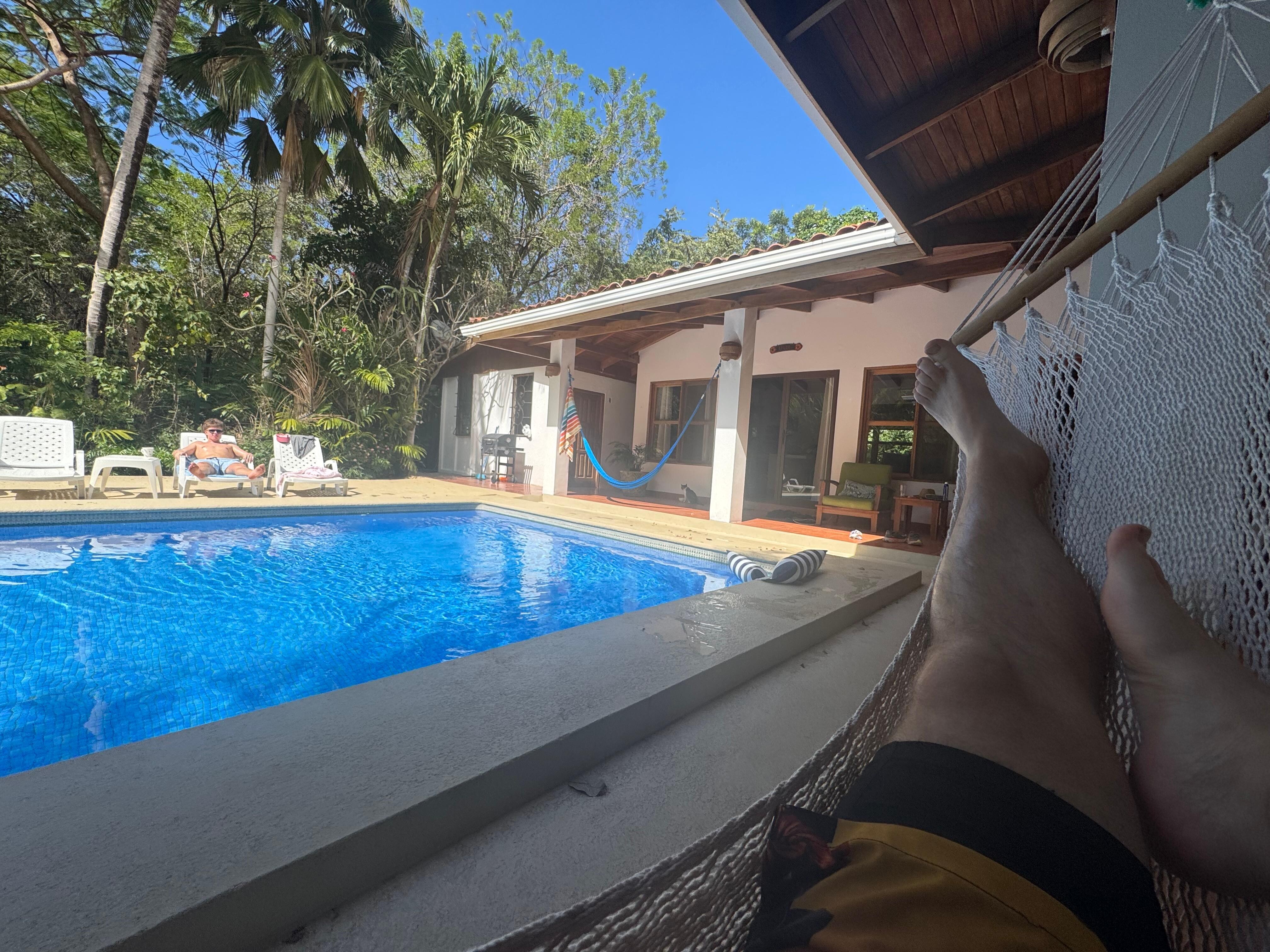 Casa Verde is light and airy with views of the pristine pool, natural gardens-especially planted for birds and butterflys-and blue ocean. Bedrooms have separate entrances from the corridor/lanai for extra privacy and you can rent one individually. A grocery store and 3 restaurants within a 5 minute walk from the house as well as bakery and fish trucks that come by the house twice a week. Continually renovated and extremely well maintained Casa Verde is your home away from home including orthopedic pillow top beds, US cotton high quaility thread count linens and extra large 100% cotton towels . All rooms include new tile and glass bathrooms, air conditioning, refrigerators, cable TV, WiFi, ceiling fans, hot water, and surf racks.