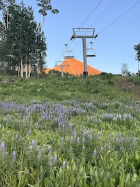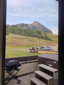 This slopeside vacation rental is steps away from all the base area's chair lifts, ski school, and your choice of ski rental shops for winter activities. In summer, enjoy free concerts right from the balcony, mountain biking, hiking, garden tours, and beautiful Colorado wildflowers and rainbows. It is conveniently located near the town shuttle and several restaurants, shops, and cafes. The deck is like no other as it faces Mt. Crested Butte and holds an eight-person hot tub, a BBQ grill, and a heated ski closet with eight boot warmers. Watch your family ski the slopes from the deck or inside from the enormous living room windows that span the entire room and soar from floor to ceiling.