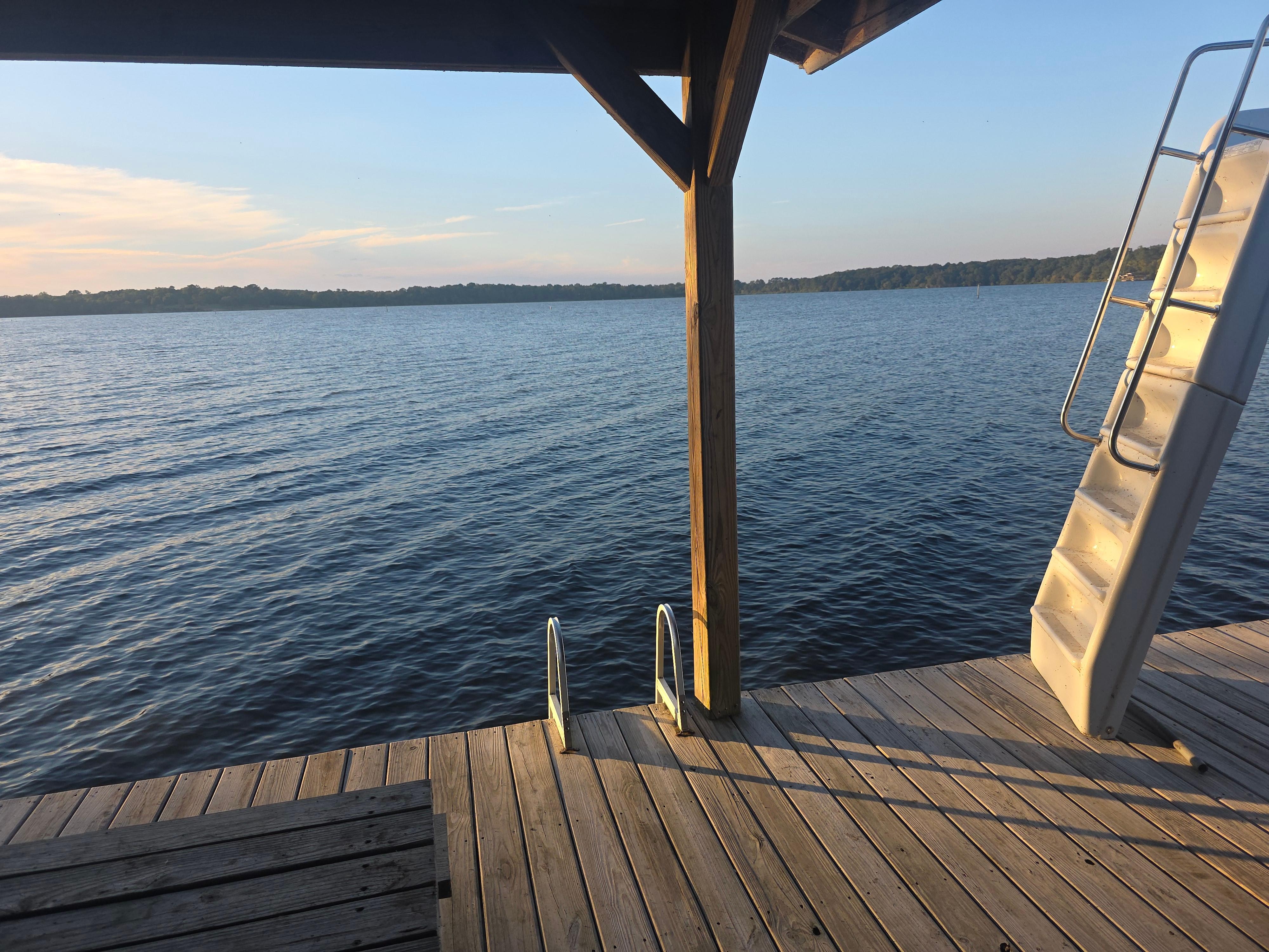 My husband and I kicked off our first summer as empty nesters with a stay at this perfect lake house. It is right on the lake with great views. My husband was pleased with the dock and the fish-cleaning station and the space to park his boat. The public boat ramp was close and the marina was only a short boat ride away. We were impressed with the quality of the bed and towels. I was also happy with the items that were provided such as bottled water, soaps, shampoo, laundry and kitchen supplies, etc. there was also a large first aid kit. The house is very spacious and could definitely work for our future family gatherings. Communication with the host was awesome! We will be back.