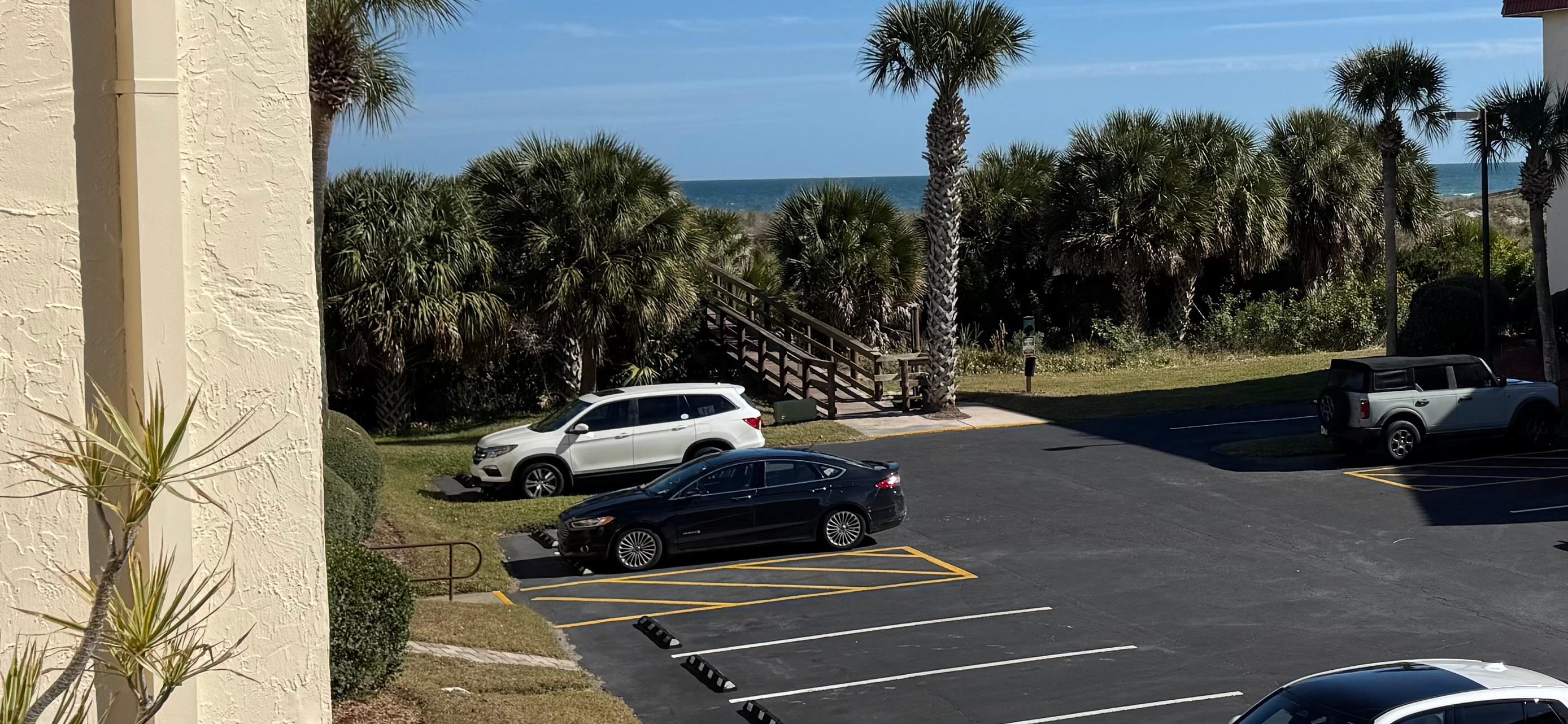 Located in the beach front Ocean & Racquet Resort, this unit has an ocean view and is just steps from St. Augustine Beach. This roomy condo includes 2 bedrooms, 2 bathrooms and can sleep up to 4 guests. Family room and primary bedroom have flat screen TVs. This unit has enchanting views from the balcony of the world-famous St. Augustine Beach with chairs provided so you can relax with your morning coffee and evening beverage. A convenient elevator offers easy access to this second-floor property, situated in close proximity to the wooden boardwalk to the beach.