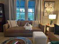 The living room provides the perfect spot to unwind,with plush seating, and the spacious kitchen with marble countertops and high-end appliances that is a dream for those who love to cook. Whether you’re making a family dinner or enjoying a quick breakfast before heading out, you will be equipped with everything you need to prepare meals at home. There is a large dining table next to the kitchen, and a trio of coffee options in the additional kitchenette area that provides a Nespresso Vertuo Plus, K-Cup machine, and drip coffee maker.