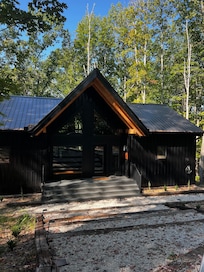 Welcome to the Black Moon Hollow, a newly built modern cabin blending minimalist architecture with rustic accents, designed for an unforgettable Red River Gorge escape.