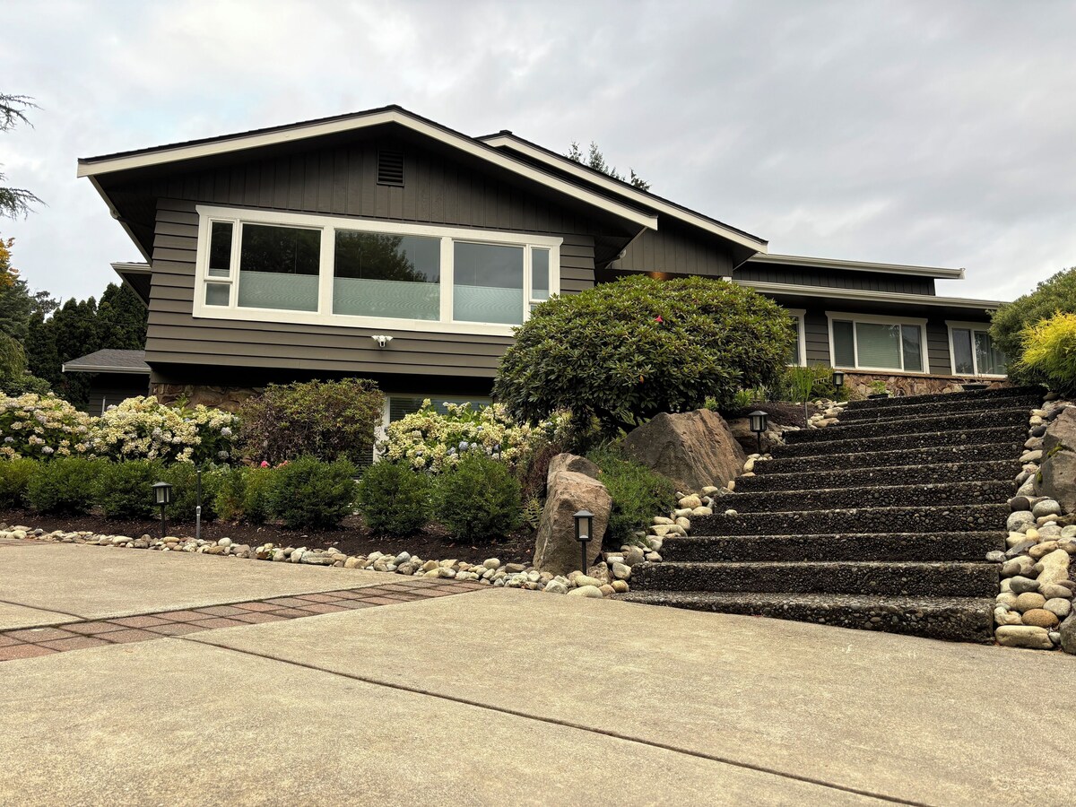 Most beautiful neighborhood on the east side. A 5-minute walk up the hill will lead to a stunning view of the Lake Washington and the skyline of Seattle. No stairs.
