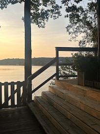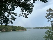 Idle Days is a beautiful remodeled home on Rock Creek. It has amazing views of rock formations and the open water. The home is located in a quiet area that is very relaxing. Enjoy the screened porch with lots of seating. You can swim in the very deep, clear water, jump from the top of the 2 story dock or lounge in the water. Endless options for a relaxing getaway or a full day of playing. 3 levels of decks with chairs to provide endless lake viewing options. You can dine outside on the screened porch or on the deck with a large dinning table. The house has approximately 3,200 square feet of centrally heated and cooled living area. The house features four bedrooms, four bathrooms. 2 levels of living including main and lower level fully equipped Kitchens and Living areas with large flat screen TVs. Both levels have an open floor plan with combined Living, Dining and Kitchen areas. Main Level has full sized washer and dryer in large Laundry room with laundry detergent provided. 2 Master Bedrooms on the main level both have attached bathrooms. One additional large bedroom is also located on the main level with the bathroom across the hall. 4th Bedroom is located on the lower level with a large bathroom across the hall. This is a great place for kids with easy access to the game area with a Foosball table, games and a dart board (magnetic). The main level open living area is large and can accommodate multiple families comfortably with seating at the kitchen island, seating for 8 at the dinning room table, a large sectional couch and an additional sitting area all in the same open room with fabulous views of the lake. There is a covered single slip boat dock if you decide to bring a boat. The dock has power and lights. The power to the dock can be shut off. There are approximately 40-45 steps from the deck to the dock walkover. This is average for Smith Lake. We are located in between Rock Creek Marina and Duskin Point Marina for convenient gas fill ups. This lake home provides everything you need for your vacation getaway. Linens, beach towels, life vests, laundry soap, utensils, pots, pans, small kitchen appliances and even some pantry items (sugar, flour, spices) and the owners strive to make your stay pleasant and enjoyable. The town of Arley's main street is less than 10 minutes away and has a fabulous grocery store that also makes their own biscuits and out of this world croissants. They have a deli where you can call in and pre-order delicious smoked chicken and BBQ ribs. They also have pizza, deli items, sides and desserts for any size group. Other restaurants are also located in Arley. Ask us about our Paddle Board (2) Rentals. Ring camera is located at the front of the home.