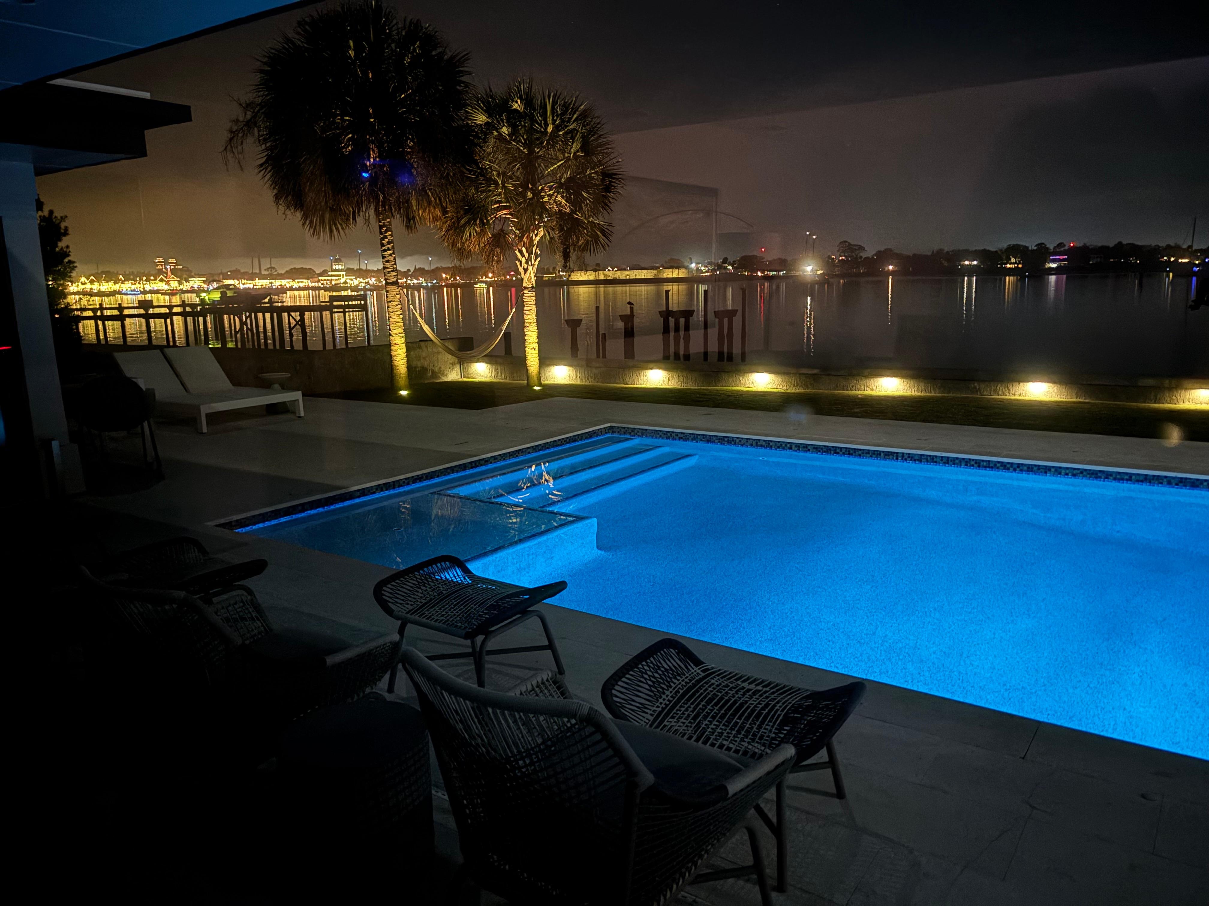 This home boasts unparalleled water views across the intracoastal looking at downtown St. Augustine and the Bridge of Lions. Enjoy magical sunsets in one of the many comfortable seating arrangement options inside and outside. Home is well appointed with a swimming pool (heated for a fee, subject to equipment cooperation), outdoor gas firepit, and more. Unwind in the secondary living room, where a stylish sofa bed provides additional sleeping arrangements without compromising on comfort. Step outside to enjoy panoramic views of downtown St. Augustine and the intracoastal waterway. Relax and watch the boats go by or take a leisurely stroll across the Bridge of Lions to explore the city’s charming streets, fine dining, and rich history.