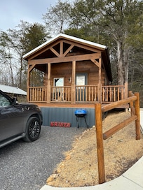The mountains are waiting for you at this cozy 1-bedroom 276 sq. foot cabin. The bedroom features a queen bed, smart tv and ceiling fan. The cabin also includes a living room with a love seat, a table and chairs for 2, smart tv, ceiling fan and a split heat and AC unit. as well as a bathroom with a large shower. There is a full kitchen with cookware, dishes, utensils, washer and dryer. Enjoy the inviting porch with beautiful views of the mountains and the French Broad River. Cabin is located at the top of a newly constructed small family owned campground. We are located near the following destinations: Dollywood Amusement Park - 55 minutes, Pigeon Forge - 60 minutes, Gatlinburg/Great Smoky Mountains - 60 minutes, Knoxville Zoo - 55 minutes, Biltmore Estates/Asheville,NC - 90 minutes, Bristol Motor Speedway - 85 minutes. White water rafting - 20 minutes