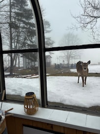 Welcome to your Idyllic winter lake retreat, where warm light, quiet forest air, and glowing amenities create the perfect cold-weather escape. Tucked directly on the lake, this home features a breathtaking panoramic solarium, a private hot tub, a cedar sauna, a cozy wood stove, and thoughtfully designed indoor spaces that make winter feel luxurious, peaceful, and inspiring.