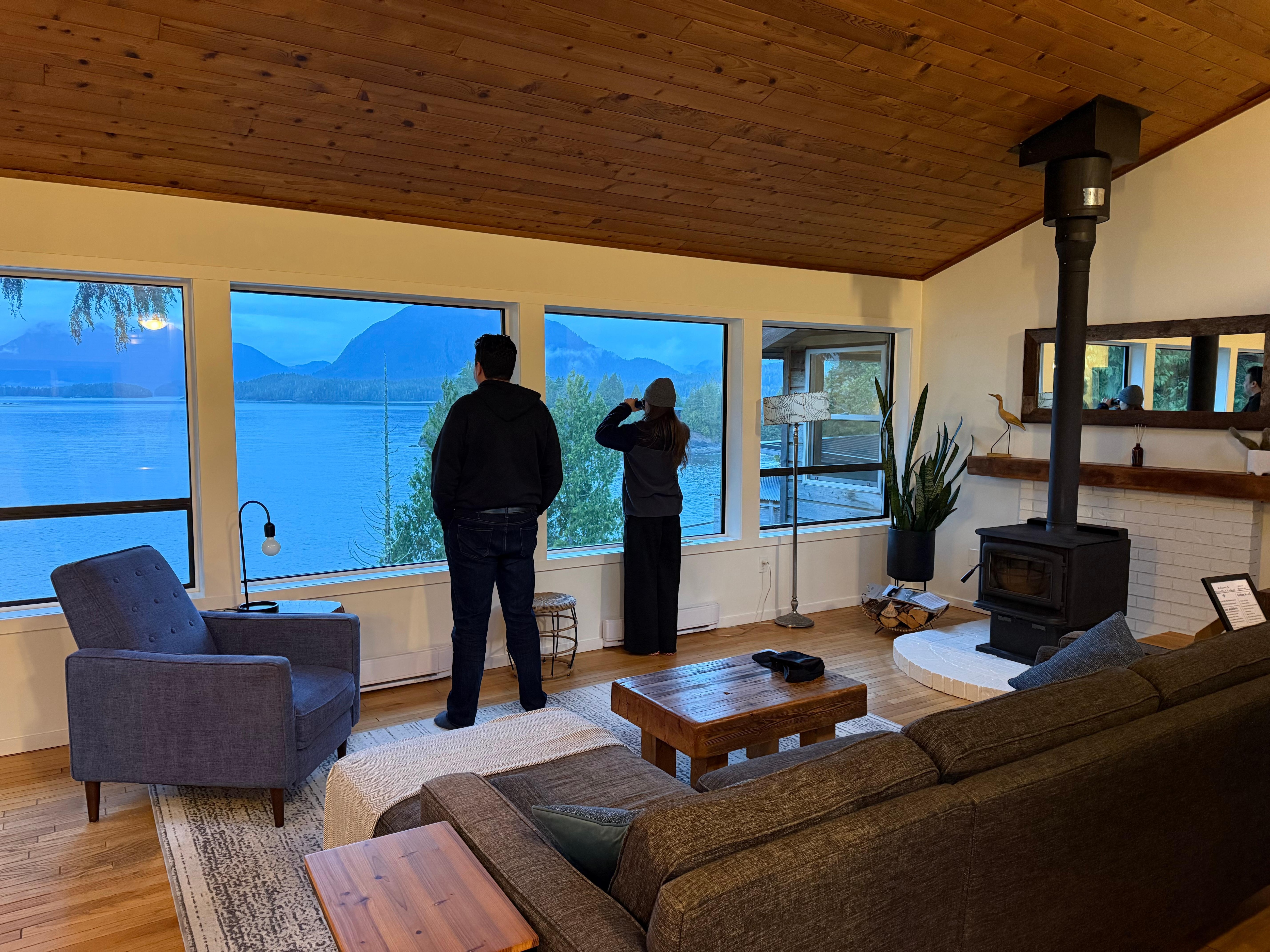 The view is extraordinary, which is why I called my home Marielle's Lookout. I believe this view is unique in Tofino, and the large windows and deck allow to enjoy it inside or outside in any weather. I also named my home after my beloved grandmother who loved the ocean. This place is also exceptional because it is an ocean front with amazing views, quiet because in a corner that not everyone knows about (Tonquin area), and also at walking distance from town and Tonquin beach. Guests can drive or take the bus to all beaches, but can also walk and don't have to drive all the time. Another feature of the place is the mid-century modern design, which is stylish and warm at the same time.