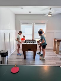 The house is wonderful, plenty of bedrooms with private bathrooms for each. We loved having all of the game tables and had several game nights. The pool was perfect when the beach was too windy. The private beach access was the best, never crowded and just a short walk from the home. The home had everything you could think of for cooking, sleeping, and staying entertained. Plenty of beach chairs, toys, and floats. Our teens enjoyed riding the bikes. The neighborhood is quiet and felt safe to run or walk in without the traffic of the main road. The kitchen has every utensil and appliance you might need and more. Having the extra refrigerators was great for keeping drinks cold and having plenty of food for our families. The beds were comfortable and we even saw there were pack n plays for families with small infants or toddlers. We would love to stay again!