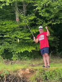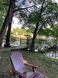 Bring your watercraft, rent one locally, or just enjoy the scenic views and wooded property. There is plenty of space for your whole family. Fish from the floating pier/dock, or swim in the lake. The Dock will hold 2 boats and there is a separate Jet Ski/Wave Runner Dock as well. Enjoy easy access to the lake with your own boat. There are no bridges to worry about when accessing the main lake from our cove which is centrally located on the lake. Since we are at the end of a cove on the lake, there is little to no boat traffic near our property, making for a quiet and serene experience when spending time lakeside.