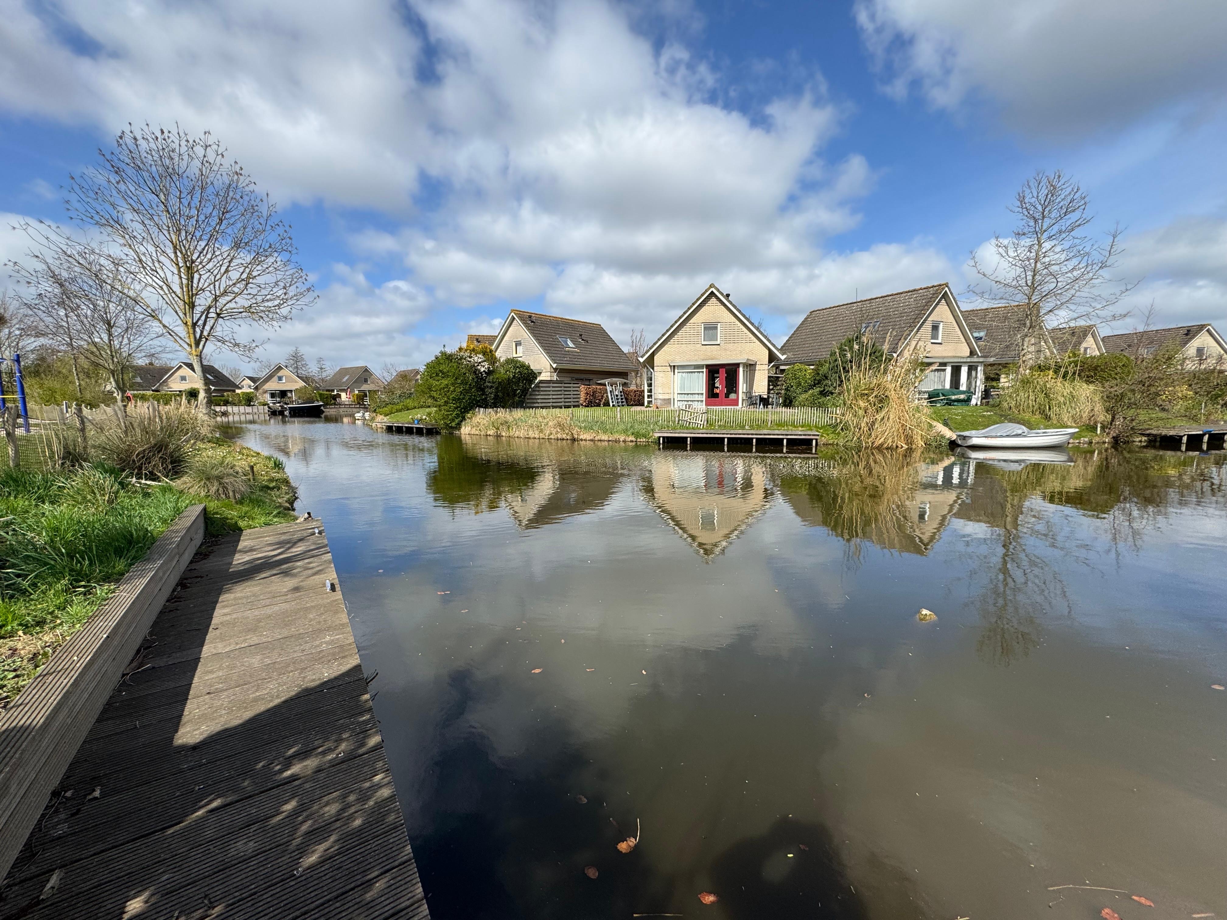 Freistehendes Haus für 5 Personen mit großem Garten am Wasser. Die Uferpromenade ist mit einem Zaun ausgestattet. Die Unterkunft ist Teil des Europarcs Ijsselmeer mit einem Innenpool.