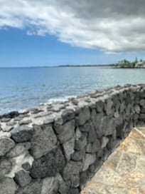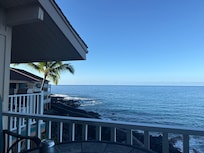 Probably one of the finest direct ocean views in all of Kailua-Kona. This 3rd floor unit looks straight over the ocean and Kailua Bay. Watch the whales breeching and the Spinner dolphins spin. Enjoy your favorite beverage on the lanai while watching spectacular sunsets. Watch the Ironman triathlon swimmers race for the turnaround buoy straight out front!