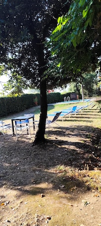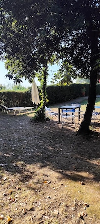 The house is surrounded by a large tree-lined garden with ample space for children's games, comfortable armchairs for relaxing under the gazebo, ping-pong table, private swimming pool equipped with an umbrella, deck chairs, chairs and a table to enjoy an aperitif. Next to the house there are also the big top with a table for outdoor dining and a barbecue.