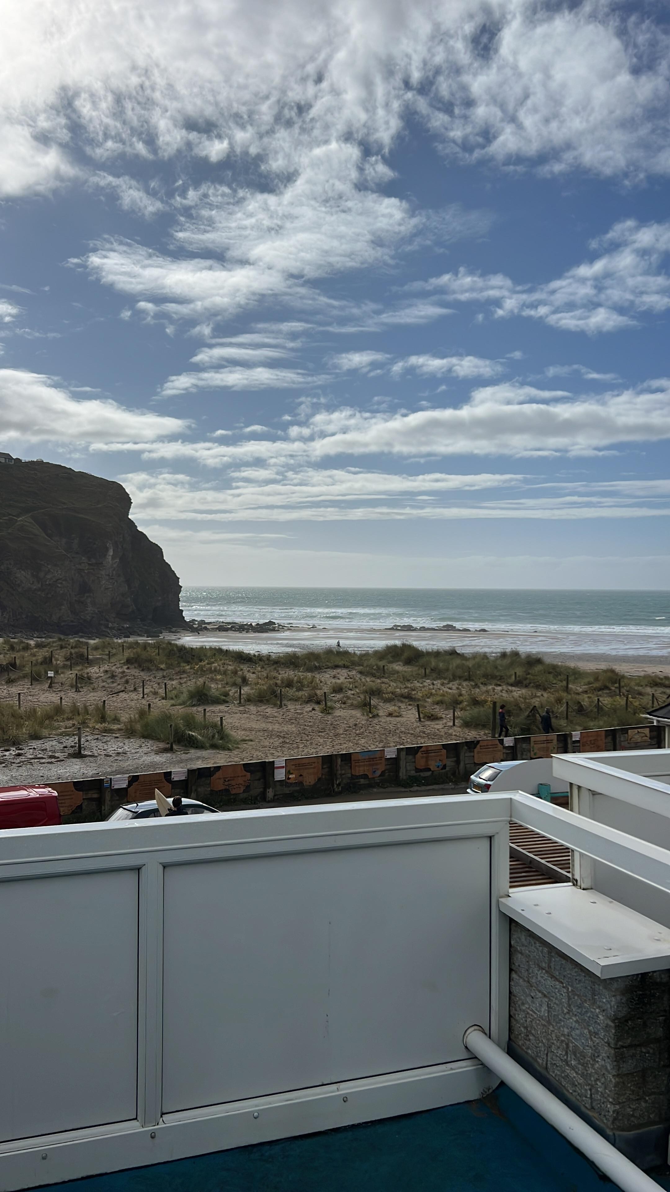Porthtowan's large blue flag, lifeguard patrolled, sandy beach is only 50 metres away. It's beautiful and loved by surfers, families, walkers and many local artists. The sunsets are very special. Patio doors lead to a private generous sized balcony with a table, sun umbrella and 4 x chairs, perfect for watching sunsets and surf. Wi-Fi is available free of charge. Parking is provided, as are bed linen and towels.