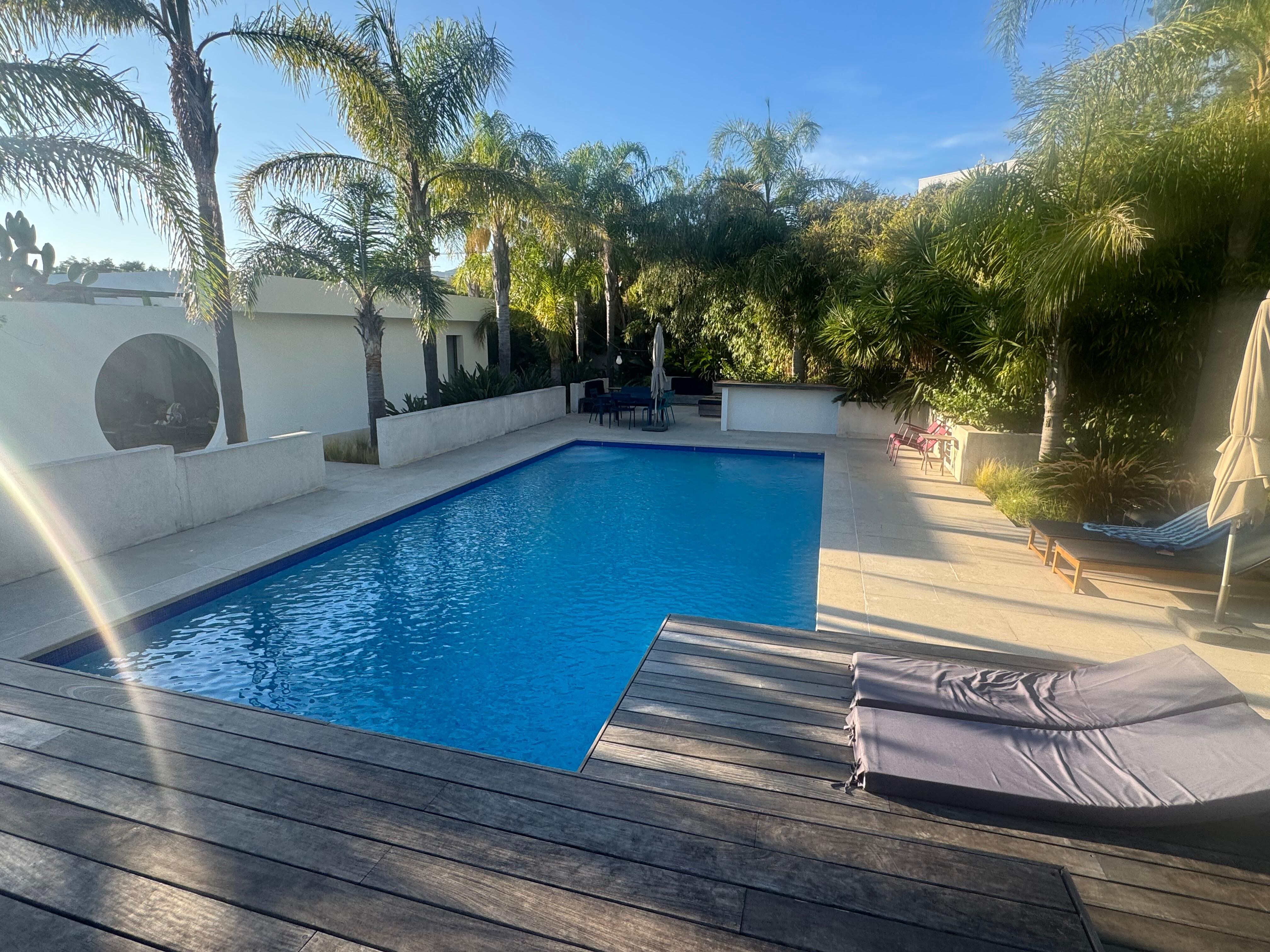 You will enjoy the exotic garden by taking a nap in the summer lounge, near the private swimming pool: palm trees, cacti, fine sand ... for an exotic holiday setting ...