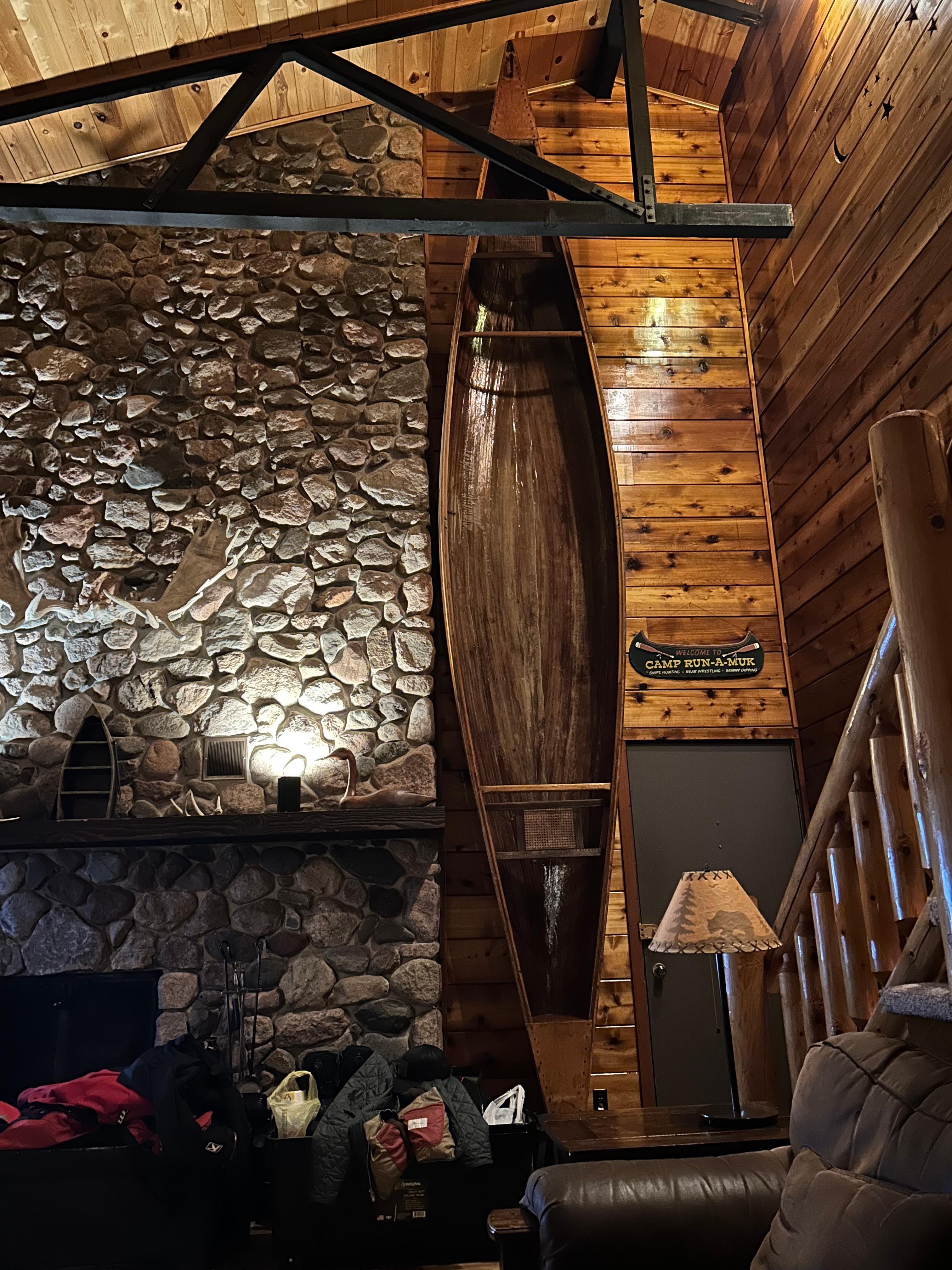 Almost the entire house interior is cedar or pine and the atmosphere is very lodge-like and while it is not a log cabin it is almost all wood inside and out. .
