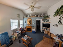 Decorated to make you feel at home in a nautical theme! Bedroom, unit a/c & heat, kitchen, microwave, 2 burner cook top, large refrigerator, dining (bistro) area, double recliner love seat, bathroom, living room, private patio with gas bar b q, private yard. 40" HDTV in living room, 32" bedroom TV, electric fireplace, Washer/Dryer, WiFi, Direct TV, 2 car paved parking, quiet neighborhood, less than 500' from river! 4 miles from shopping & restaurants. This is a dander free facility...sorry no pets allowed