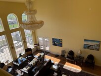 The interior design concept has a European influence using vivid colors, creamy plaster-work, dramatic heights and grand detail to whisk cares away. The great room and kitchen are located downstairs. Flooded with the sunlight that pours in from the windows or glowing under shaded wall sconces, the 6012-square-foot building with 30 foot ceilings in the great room manages to look sleek and welcoming.