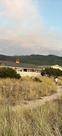 There is a level, short path leading out to the beach from the back deck.