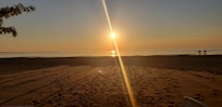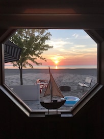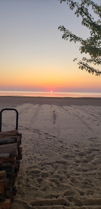 The front of the cottage faces west and offers spectacular sunsets. You can sit on the deck and watch the boats go in and out of the harbor along the Caseville break wall. The sandy beach area provides a place for sunbathing, a game of Bocce ball, Frisbee or whatever outside games you bring along for your week of fun. Shallow water along the shoreline provides an excellent area for kids to play.