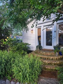 Our backyard and garden is perfect for you to enjoy your morning coffee, tea or espresso under our market umbrella and outdoor dining table furnished with comfy cushions. Grill your fresh catch on the BBQ! Newly built large Outdoor Shower and deck with private entrance to cottage. Fully stocked with bath products, shampoo, etc. Great for after the beach or boating!