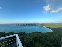 This is the house featured in advertisements for St Thomas and has been filmed by HGTV s Caribbean Life episodes whenever photographers want to capture the beauty of St Thomas. The views from this villa are THE best---providing a clear picture of the turquoise waters of Magen's Bay Beach, St John, and the British Virgin Islands. Star gazing at night from pool deck is a natural wonder commented on by every guest. Truly 5 star in every respect! Poised perfectly on a bluff overlooking Magen’s Bay Beach, this incredible villa presides majestically over one of the world’s most renowned beaches below. Located in a private gated community close to beaches, minutes from the airport, shopping, dining in Charlotte Amalie, close to the golf course and zip-lining. Our concierge will help you with restaurant reservations, boat trips, provisions, and anything you need to make this the most spectacular vacation of your life. We can arrange a private chef who will come to the villa as well as yoga instructors and person masseuses---anything you need for a fabulous vacation. From your first step through the floral wrought iron entrance gates, you will be surrounded by tropical flowers and panoramic views of ocean, bay and beach. The views are mesmerizing. Below the villa is a pristine nature preserve that extends down to the beach. The gorgeous, totally new gourmet kitchen with Italian granite and Spanish onyx counters is a chef’s delight. It features solid wood hand-crafted cabinets, new dishwasher, double refrigerators with ice makers, in-drawer microwave, walk-in pantry stocked with cooking essentials, spices and paper goods. The vast counters allow your family or guests to nibble on appetizers or help in meal preparation without getting in each other’s way. The barbeque is perfect for outdoor cooking and eating al fresco. The adjacent formal dining room seats 8 and boasts a mammoth baroque mirror and Tuscan sideboard. The Great Room features a wall of glass affording sea views from every vantage point. Step out onto the largest of the many terraces and decks that grace the villa and notice how the turquoise of the bay near the beach gradually gives way to the deep blue of the ocean beyond. Take your first dip in the crystal clear over-sized swimming pool (among the largest on the island). A Fire Pit with chars and chaise lounges awaits a few steps down on the lower terrace . On opposite side of the Great room, you can enjoy another outdoor terrace with a garden setting of palms, Birds of Paradise and other exotica, complete with garden fountain. It is the perfect place for reading and watching the finches and hummingbirds. The world-famous mile-long Magen's Bay Beach is directly below the villa. You can hear the waves and watch world-class yachts entering the bay. Magen's Bay is the home to the most rainbows. It is common to see 4-5 each week. You will have to drive to the beach because the terrain is so forested. However, it is an easy drive of 2 left turns. You can also make a right turn and go down to Hull Bay Beach. All beaches are public and Google maps works perfectly everywhere. In a bold departure from the typical Caribbean villa, this modern paradise oozes elegance in every possible way. You will enjoy gorgeous new tile in every room of this villa. Every room has a Blue-ray player and a flat screen TV. The villa has an excellent DVD library for our guests or feel free to bring your own. Enjoy the fully stocked wet bar which operates on an honor system (replace what you consume with something of equal quality and amount when you leave). High speed internet is available is every area of the villa. The villa has 4 spacious master suites with private bathrooms. Three have private decks for morning coffee or evening cocktails, star gazing or taking in the gorgeous panoramic views. Each room is air conditioned, has distinctive ocean view, all new furniture and an ocean theme. All bathrooms have been updated with granite, marble, or pretty tile. Glass vessel sinks and walk in showers are features that get rave reviews. Each room has a luxurious rug, soft cotton or bamboo sheets, comforters, huge mirrors, luggage racks, sofas or chairs, ceiling fans, and large closets. Being on the North side of the island allows this villa to capture the trade winds and generally keeps the entire house cool with gentle breezes. On the rare occasion that is not cool enough, we are one of the few villas with a new AC unit in the Great Room as well as each bedroom. Solar panels linked to state-of-the-art Tesla Power Walls allow us to capture, retain, and use the sun’s energy. Guests love staying in a home that will be making the planet healthier every day. No pets please. Keywords: Villa, rental villa, ensuite bathrooms, large pool, four bedrooms, master suites, 4.5 bathrooms, walk-in showers, hot tub, balconies, outdoor eating, private location, high-end, 5-star, amazing views, granite counters, romantic setting, gated community, great villa manager, gorgeous furnishings, new kitchen, concierge, beach, luxury. We have added a firepit and chairs for relaxing in the evenings with a great view!