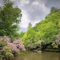 Big Brasstown Creek runs into the Hiawassee River within 2 miles of the cabin. There is a parking area off new Highway 64 where bank fishing or tubing is possible or enjoy fishing & tubing right outside the cabin. Within 30 minutes of the cabin are horseback riding, ziplining, or the Blue Ridge train ride venues. In the fall, drink in the beautiful color that can be found throughout the area's many different driving routes. In the springtime, the abundant Mountain Laurel makes for a beautiful addition to the creek foliage.