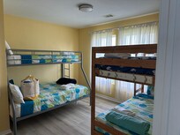 Bedroom 1: Queen Bed | Bedroom 2: Queen Bed | Bedroom 3: Twin Bunk Bed, Twin/Full Bed | TV Room: 2 Twin Beds | Living Room: Queen Sleeper Sofa