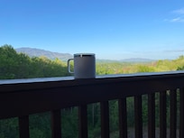 The living room's relaxing, cozy lodge furniture is perfect for snoozing or watching the 50" LED TV with satellite, sound bar, subwoofer and Blu-ray DVD. A leather easy chair is just the right spot to gaze at the mountains. Unwind and read a book in the swivel chair, spin it around to enjoy the view or gaze up at the moon through a large picture window. When it rains unwind on the covered back deck or covered front porch and enjoy the soothing sounds of a Smoky Mountain rainfall. In winter the deck is the perfect spot to experience a Smoky Mountain winter wonderland.