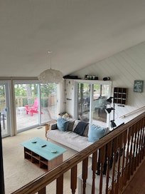 Please note we allow up to 6 adults and 2 children. We feel the space is not large enough for 8 adults. No pets allowed. There is one exterior security camera on premise that overlooks the staircase down to the lawn.