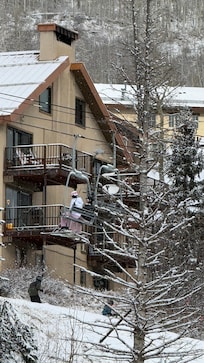 The living room's 3 large glass doors offer spectacular views every day from much of the upstairs, of the Needles Mountains, Twilight lake across the highway, and the winter Bunny Slopes down below. Our corner condo is approximately 1275SF, on 2 levels with hand-scraped maple floors on both levels, carpeted winder stairs with a new handcrafted knotty alder railing, a balcony and a patio. Also new in fall 2018, our home has knotty alder doors and trim throughout the interior, including a gorgeous new entry door.