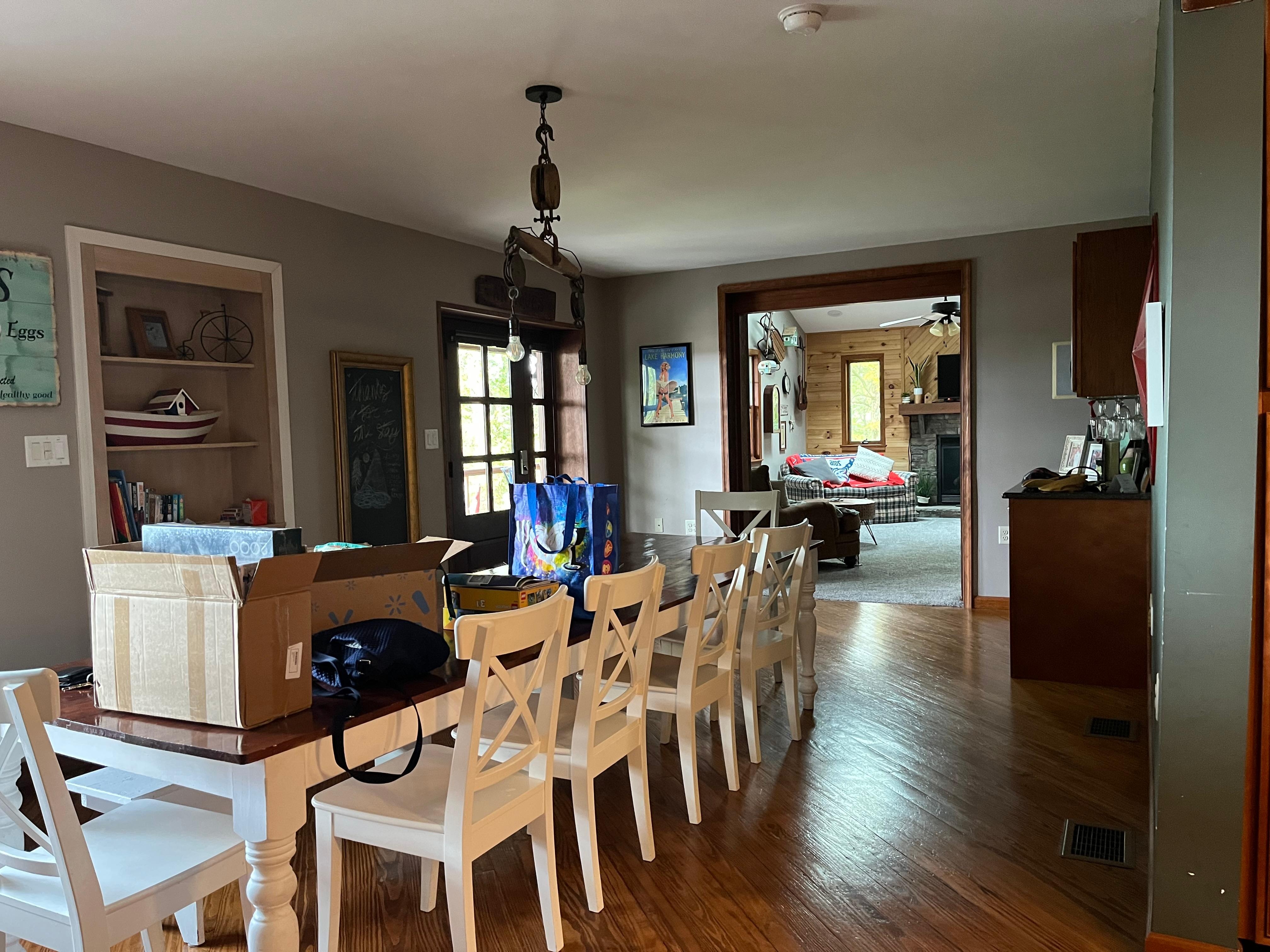 A massive 11 foot dining table will greet you in the heart of the home, with Gorgeous real hardwood floors adding to the Pocono charm.