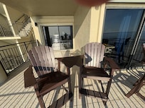 OUTDOOR LIVING: Furnished balcony, ocean views, beach access
