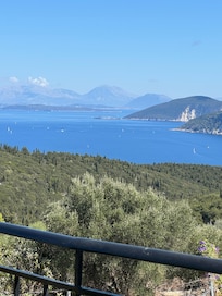 Villa Kalogris has private pool, BBQ and parking space. This 2 storey, traditional property boasts breathtaking view across the Ionian sea over to the neighboring islands of Ithaka and Lefkas. It is situated just 500m from Maganos village with local tavernas, mini markets, grocery shops and 3km from the picturesque Fiskardo. This lovely villa is ideally located among olive trees and beautiful flowers in a relaxing and peaceful surrounding. It is stylishly furnished throughout and fully equipped with everything you need for your holidays. On the ground floor there is a spacious living room with fireplace, comfortable sofas and a separate dining/kitchen area seating six. The living room has 2 patio doors that lead directly onto the pool terrace. On the ground floor there is also a double bedroom and a spacious bathroom. On the upper floor there are two twin bedrooms with en-suite bathrooms and private balconies. All three bedrooms are air-conditioned.