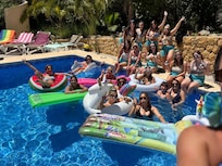 The spacious garden has an outside bar in the pool area and plenty of seating. Draught beer and sangria is available on request. There is also an outside jacuzzi and barbecue. Parking onsite if required. We also offer an economic and efficient airport transfer service. Property manager contactable and available throughout for help and emergencies.