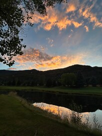 Our house is bordered by the 7th fairway and a sizable pond that is the vacationhome of wild geese, otters, and deer are constant visitors and the steam train whistle as it goes through Trimble Crossing is the perfect iconic western music for the post card scene.