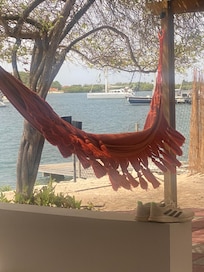 Villa Hammaka is a private house right on Curacao's Spanish Water bay, with breathtaking views of the beautiful landscape and sunset skies right from your private beach and pier. After leisurely waking up, you can enjoy the morning breeze while having breakfast on the porch or under the pergola by the beach. When you are ready, grab some snorkel gear and search for the hidden "treasures" around the pier. Afterwards, you can catch up on your reading while relaxing in one of our hammocks. If you want to be more adventurous, you can take a car to experience the many attractions Curaçao has to offer. Be sure to get back to the house in time to pour your favorite drink, put your toes in the sand and capture the breathtaking sky at sunset.
