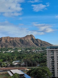 The unit sleeps 5 people, with a queen bed and twin bed in the bedroom, and a sofa bed in the living room. Equipped with all your cooking needs, guests can save money by cooking in the full-size kitchen. When you don't want to leave the property, you can enjoy lounging on the rooftop pool. A bbq area is also available for your use. On-site is a mini-mart where you can pick up additional toiletries or items you may have forgotten. You can enjoy the peek-a-boo views of the ocean and the iconic Diamond Head landmark from your lanai (balcony), while sipping on a glass of wine and enjoying the Hawaiian breeze.