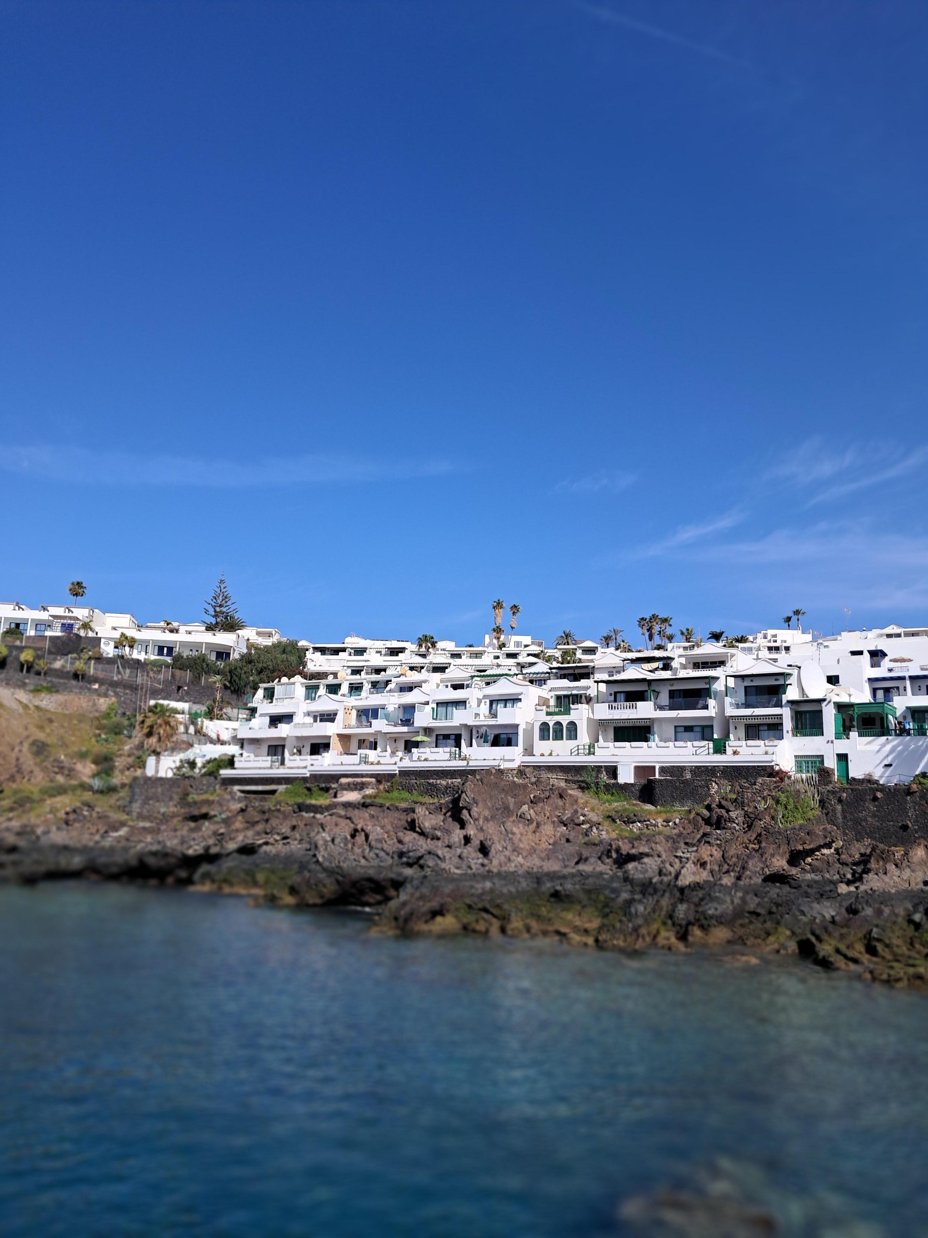 Guests also have access to a well-maintained communal pool area with sun loungers, offering beautiful views over Puerto del Carmen harbour and across to Fuerteventura.