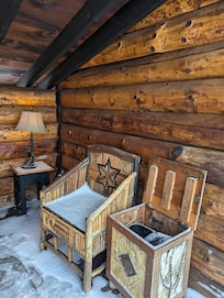 The oversized deluxe suite features handcrafted Adirondack-style furnishings, a fully equipped kitchen with custom alder wood cabinetry and granite counter tops. The suite offers a private cedar and mahogany balcony. From the Lodge there are majestic views of the surrounding mountains. The suite has its own washer and dryer and the living area has an updated flat screen television. There is complimentary high speed internet and telephones throughout.