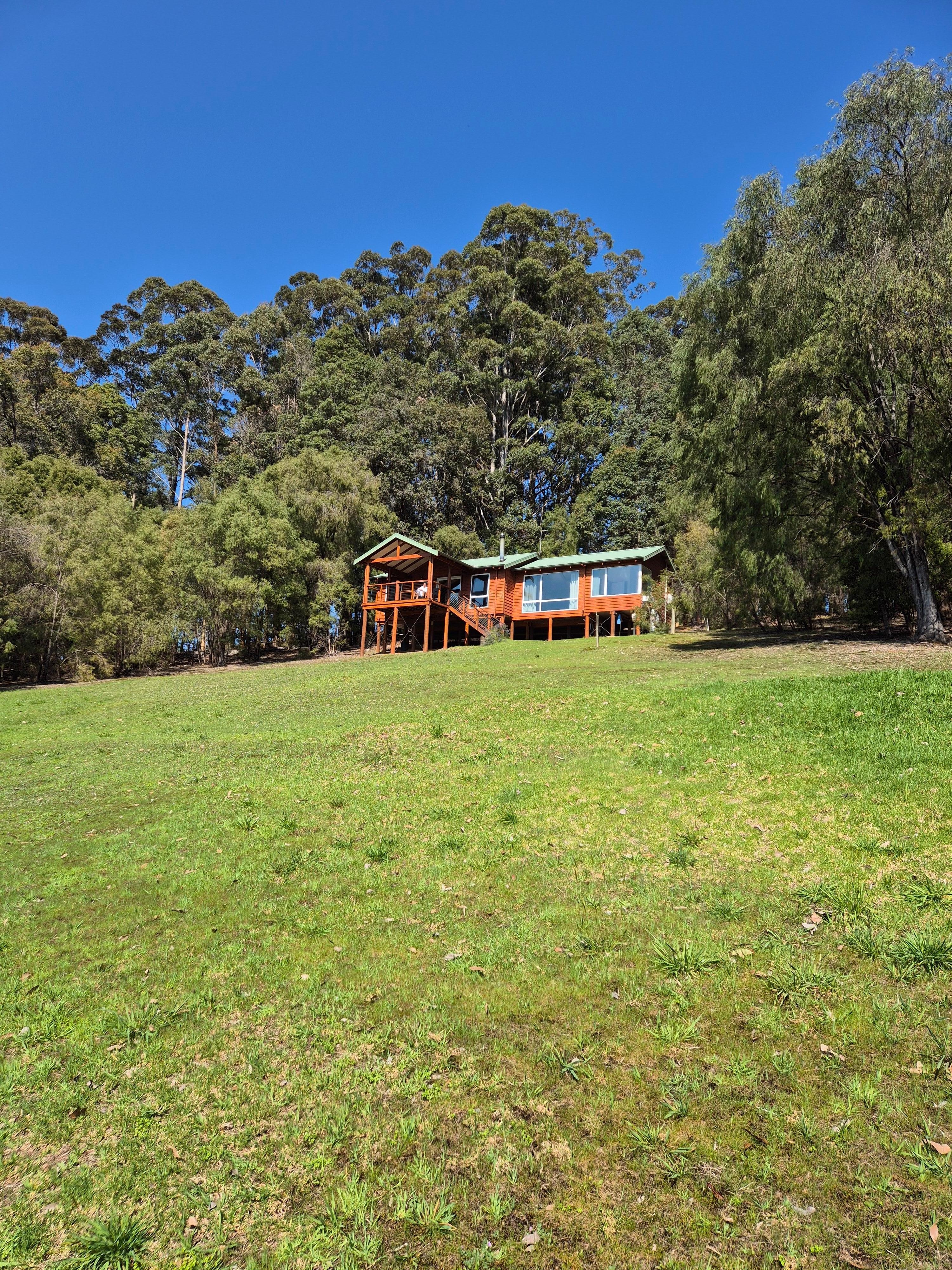 Your stunning chalet "Orion" is set amongst 60 glorious acres and commands an awe inspiring view over the forest and valley below. Bordered by the Lefroy Brook and Warren River the chalet also has its own private dam stocked with both Rainbow and Brown trout. Sky windows above a King size bed complete the picture . Sleep under the stars for a truly unique experience.