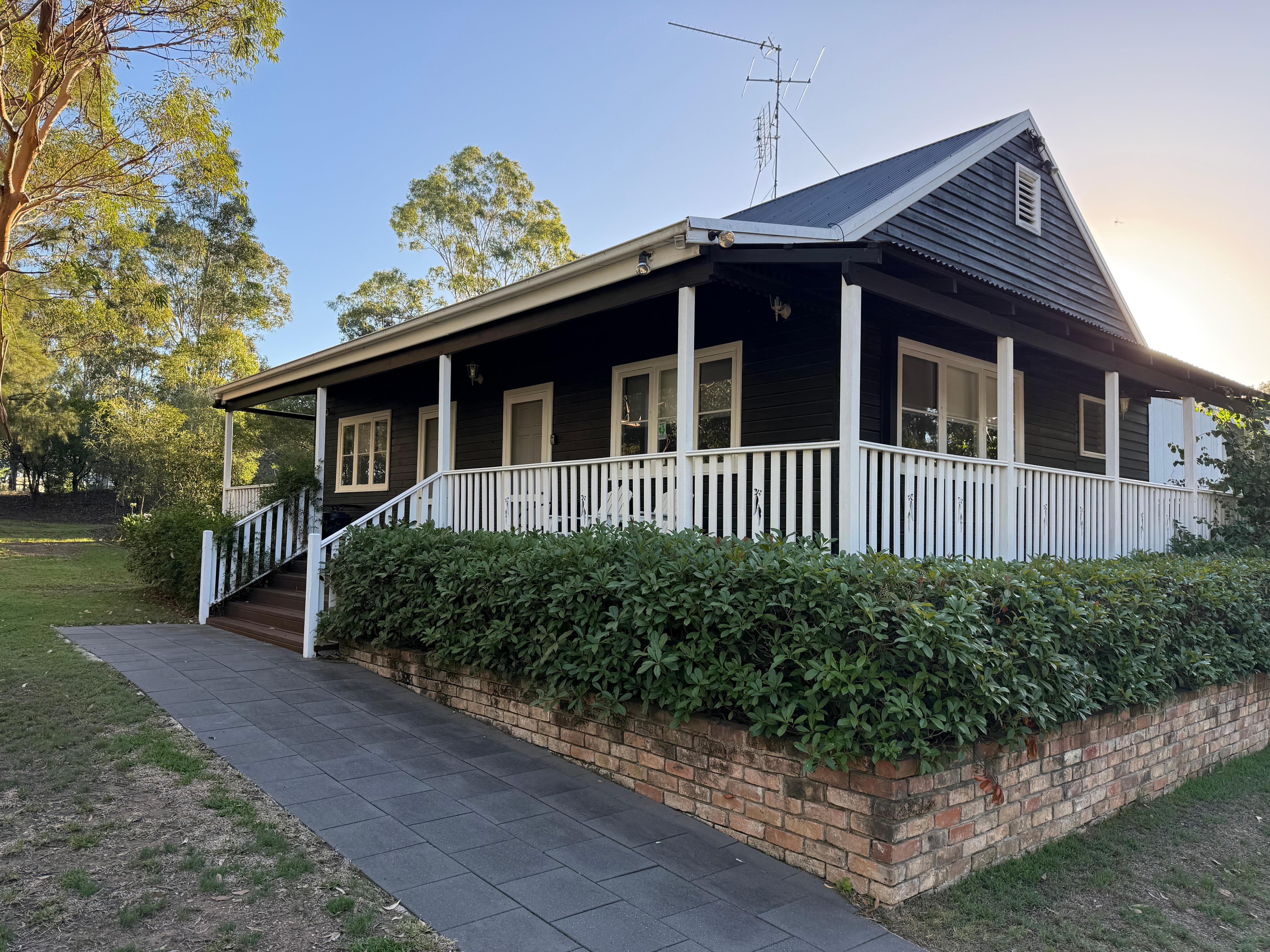 Our cottage is an old style two bedroom weatherboard with a classic covered country style balcony on the Eastern and Northern side and with a recently renovated kitchen, bathroom and a cosy living/dining room to relax and watch TV or chill out after a busy day visiting the local attractions. The location is fantastic being minutes to Hunter Valley Gardens, Hope Estate, Roche and Bimbadgen and right next door to the gorgeous Italian Restaurant Pescara; very central and close if you are attending one of the many concerts in Pokolbin. It is about a five minute drive away from the Vintage Golf Resort & Spa and is surrounded by vineyards, restaurants, cafes and all of the attractions that have made the Hunter Valley Wine Region a favourite for visitors from around the globe.