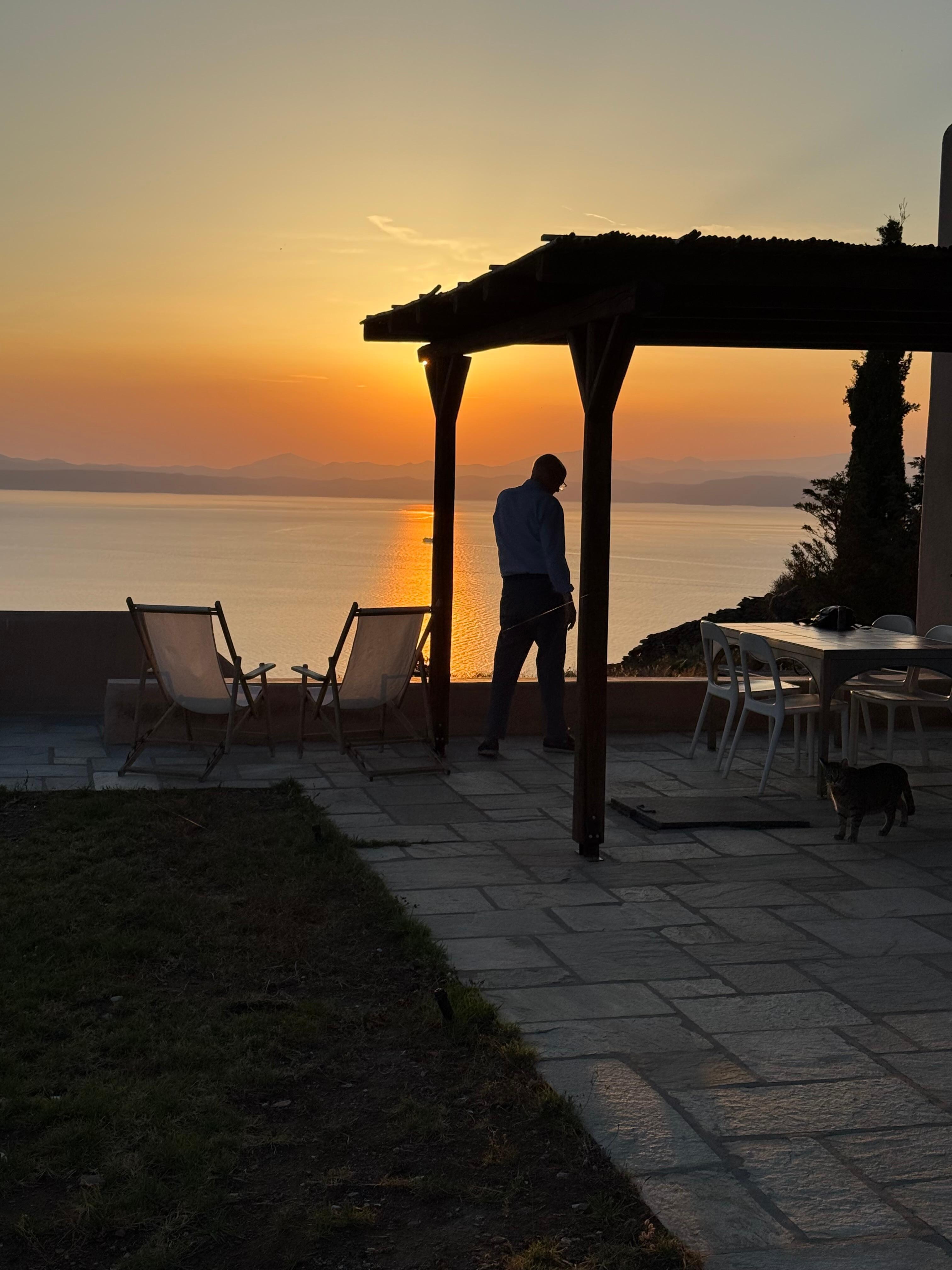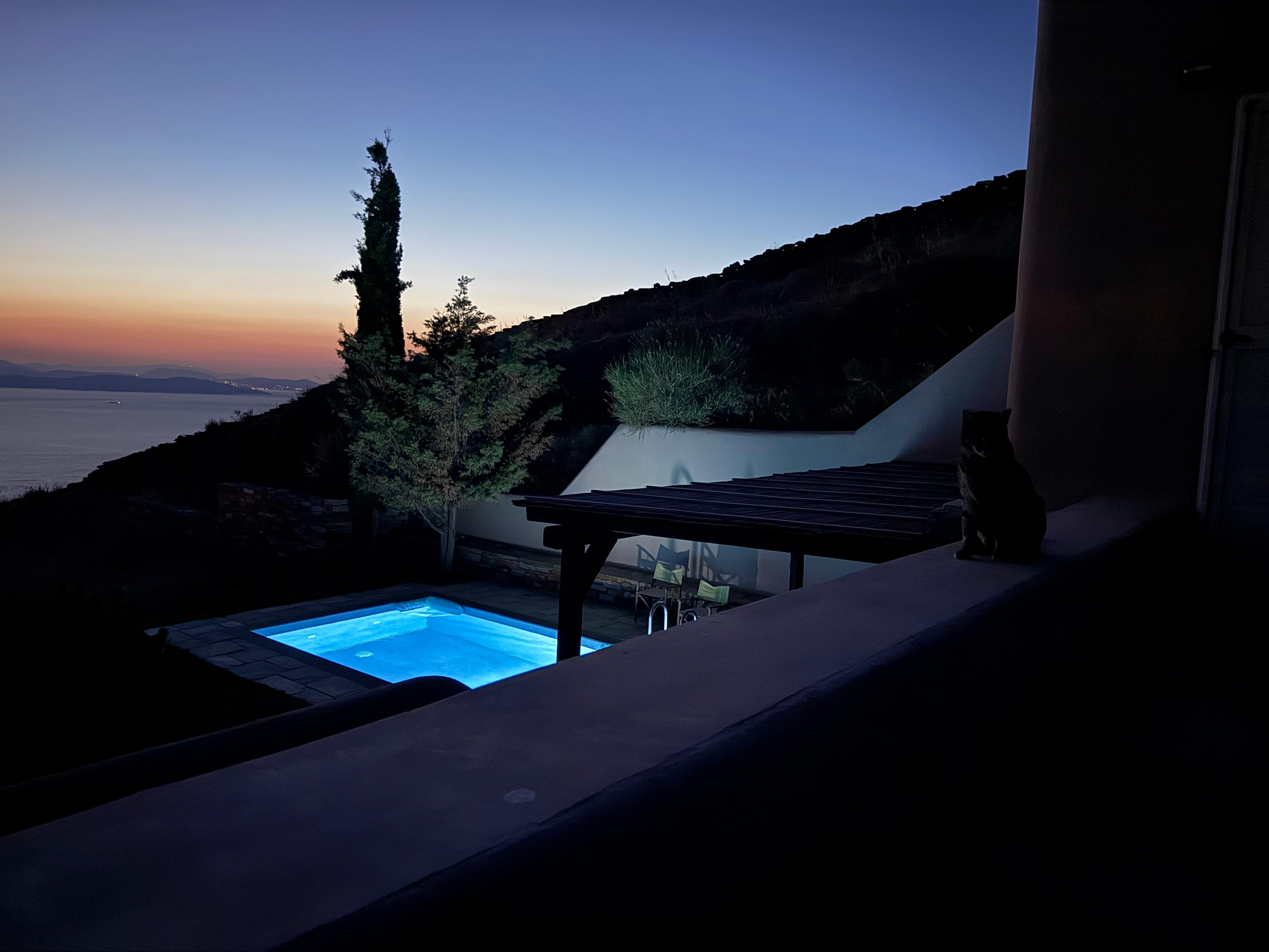 Best sunsets in town. I shouldn’t write anything more, that should do it. Best sunsets in town, period. I just can’t put it into words. The light, the wind, and the smells of the arid Cycladic earth serve as potent mood changers. No room for stress or negativity. Everything goes away, no shrinks, no drugs, and no need for music. Just listen to the nature’s sounds. Nothingness is overpowering.